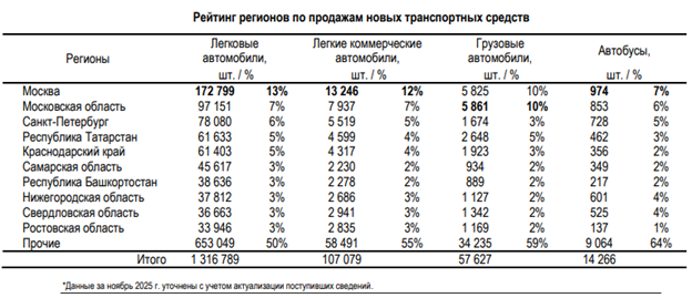 В целом по стране в 2025 году, по данным АО «ППК», было продано 1 316 789 легковых автомобилей (-15% к 2024 году), 107 079 лёгких коммерческих автомобилей (-24%), 57 627 грузовиков (-53%), 14 266 автобусов (-31%).
