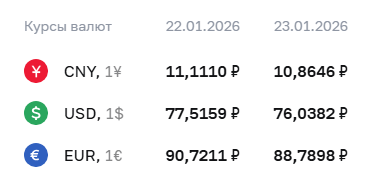 ЦБ РФ понизил курс доллара на 23 января до 76 рублей