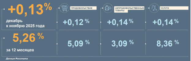Среди непродовольственных товаров быстрее всего росли цены на печатные издания, медтовары и мебель, где производители перекладывали на потребителей рост затрат и дефицит кадров. Электроника в декабре дорожала сезонно — на фоне предновогоднего спроса и ожиданий повышения НДС, хотя в годовом выражении телевизоры и компьютеры, наоборот, заметно подешевели.